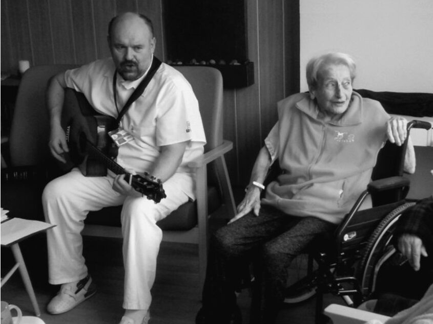Za týden už byla ochotná jít s námi zpívat. Schází se nás na oddělení následné péče asi deset a zpíváme hlavně národní písničky. Dana má ráda ty moravské. Od Buchlova, Zaspala nevěsta, V Zarazicách krajní dům, ale když dojde na novější, třeba Matuškovy nebo Suchého se Šlitrem, tak významně ožívá. Nakonec si také přeje jednu: „Umíte také Pramínek vlasů, pane kaplane?“ Najednou mám pocit, že se jí i lépe dýchá. Rozhodně to není co slovo, to nádech. A Dana zpívá. Někdy doříkává s mírným zpožděním poslední slovo určité fráze. Usmívá se a některá slova si opakuje. Na závěr zpíváme Život je jen náhoda a Hašlerovu Ta naše písnička česká. Za končujeme vzpomínkou na TGM — Ach synku, synku, ale Dana si ještě předtím přeje Teče voda teče. Sedí vedle mě a najednou si uvědomuji, že odvrací tvář, dívá se do okna, zdá se mi, že má vlhké oči…