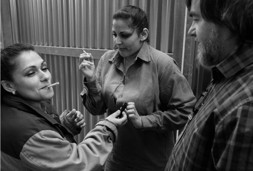 Zase ty schody, ale teď spíš dolů: Evo, moc děkuju (dozorkyně otvírá a zavírá celu). A jak jde dneska služba? Jó, celkem už je klid, ráno nás naštvali… ale teď už to jde, už aby byl večer. A co potomek? Je rád, že už může chodit do školy. A nějakej partner na obzoru? Ne ne ne, toho posledního bylo dost. Beztak ty ženský sem dostali chlapi. V některejch případech určitě, ale taky jsou to pěkný potvůrky nebo potvory! To jo, tu Bílou chytli s kurýrem! Ty bych střílela nebo doživotí, ničí lidem život. To je pravda. A ty jim zpíváš! No to jo, ale snažíme se někam dojít, třeba k tomu, že špatný věci odnášejí jejich děti! Já je rozhodně nijak nechlácholím, že jsou největší chudáčci, někdy mě štvou, někdy je mi jich líto. Tamta, jak pořád chtěla vyskočit aspoň na jednu návštěvu za tátou do nemocnice, to bylo dost zlý, už ho neviděla. Tu utěš! Určitě s ní budu mluvit. Tak přeju dobrou službu, ať ti to uteče. A radost ze života! No děkuju pěkně…